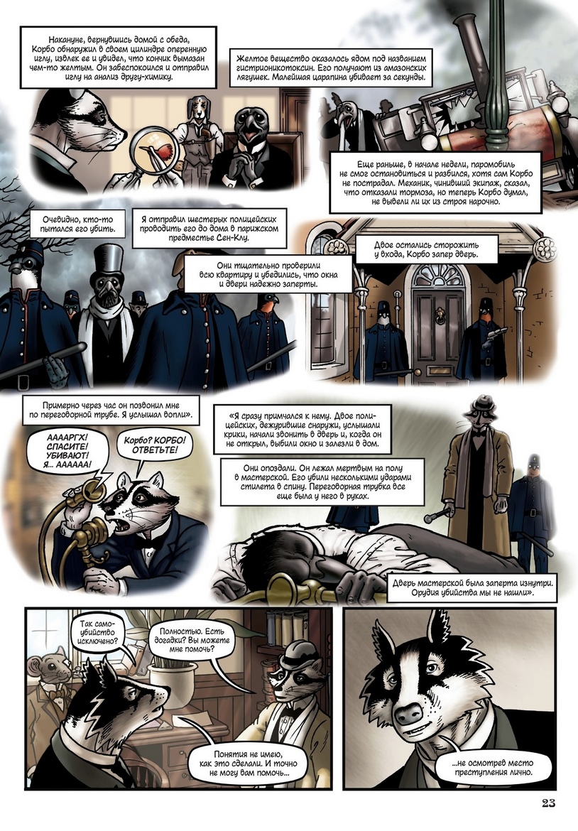 Именно этим маршрутом отправляется детектив-инспектор ЛеБрок из Скотленд-Ярда, расследуя «невозможное» убийство в запертой комнате знаменитого художника Гюстава Корбо, или пытаясь вернуть в семью племянницу своей квартирной хозяйки, угодившую в сети тоталитарной секты «Серебряный путь», или разыскивая так называемые Истинные Евангелия — с поистине барсучьим упорством. Ведь ЛеБрок не кто иной как барсук, и мир «Гранвиля» населен преимущественно антропоморфными животными, тогда как люди («тестолицые») служат на самых черных работах и лишены гражданских прав…